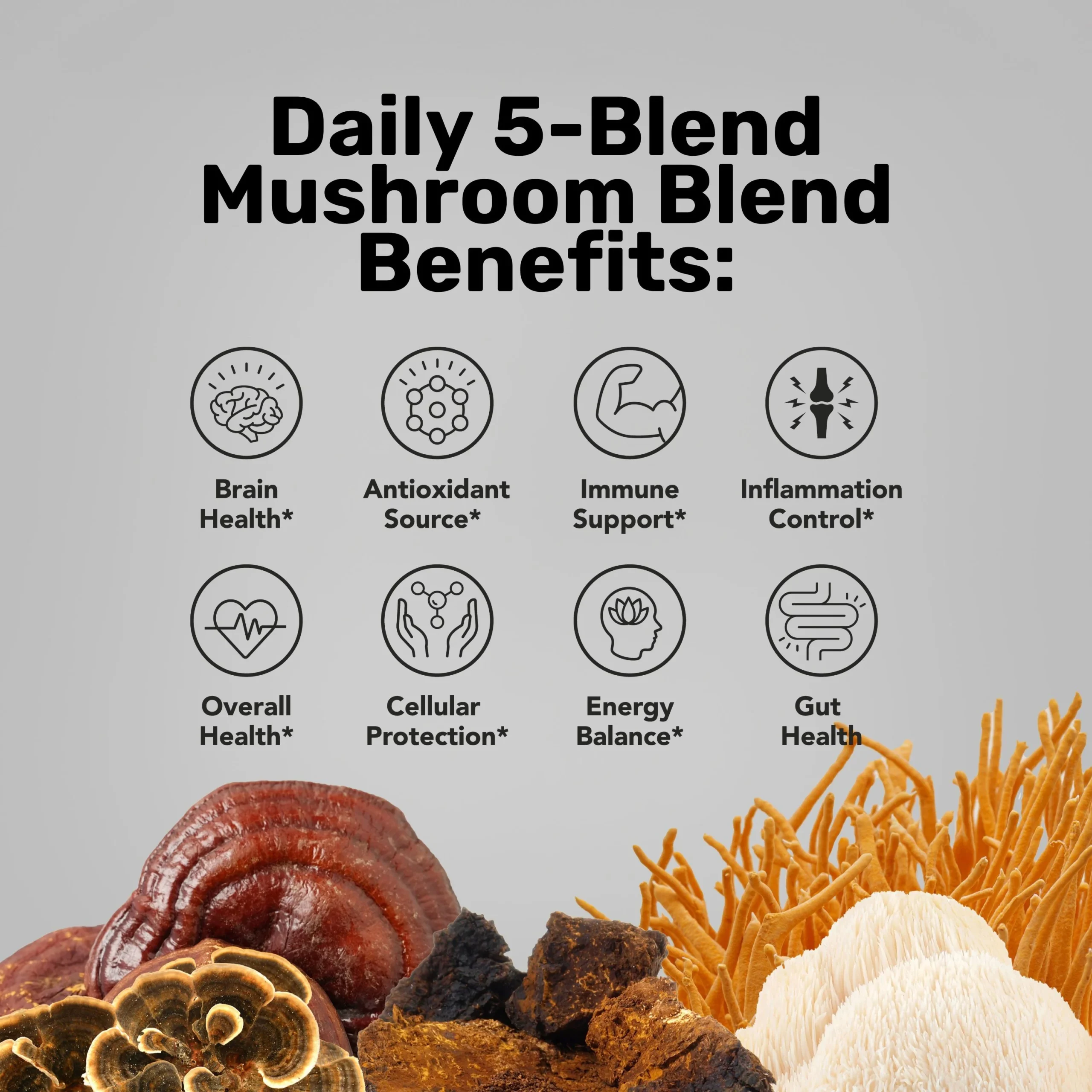 Lion’s Mane – Supports memory, clarity, and brain health