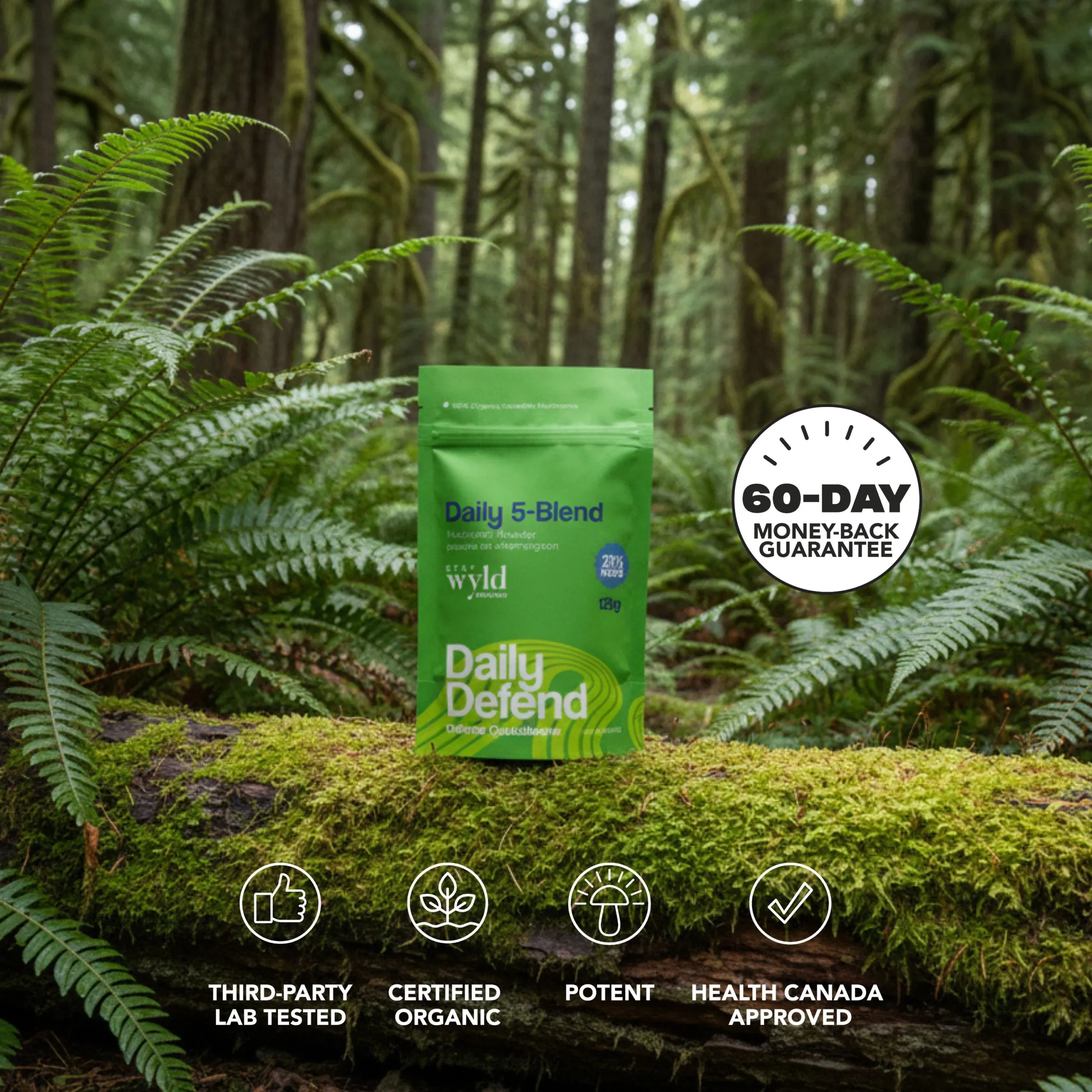 Stay resilient with our Daily 5 Mushroom Blend Capsules, each delivering 500 mg of organic, vegan, non-GMO, and gluten-free mushroom support. This daily formula combines five of the most revered functional mushrooms into one convenient capsule, giving your body the comprehensive defense it needs every day.