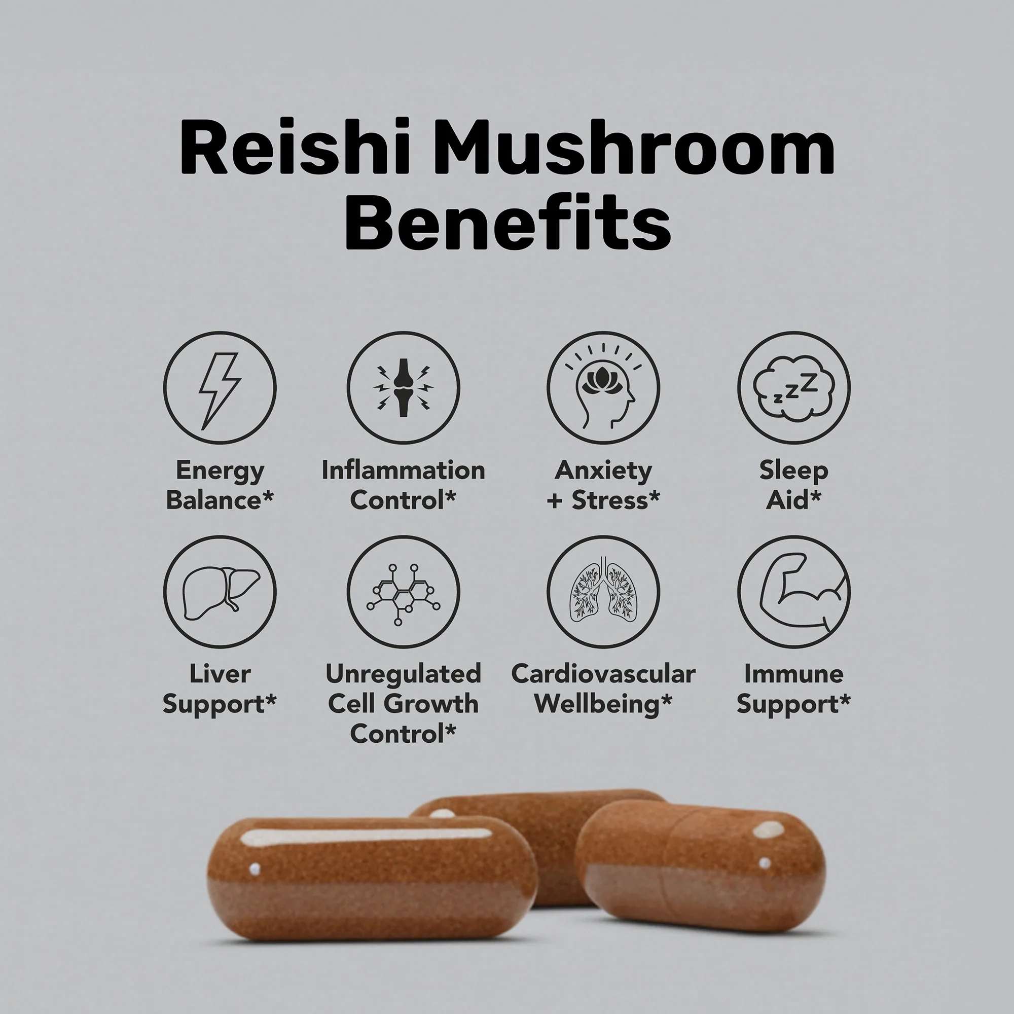 Stress Less Reishi Capsules – Support calm, balance, and stress relief while strengthening overall wellness.