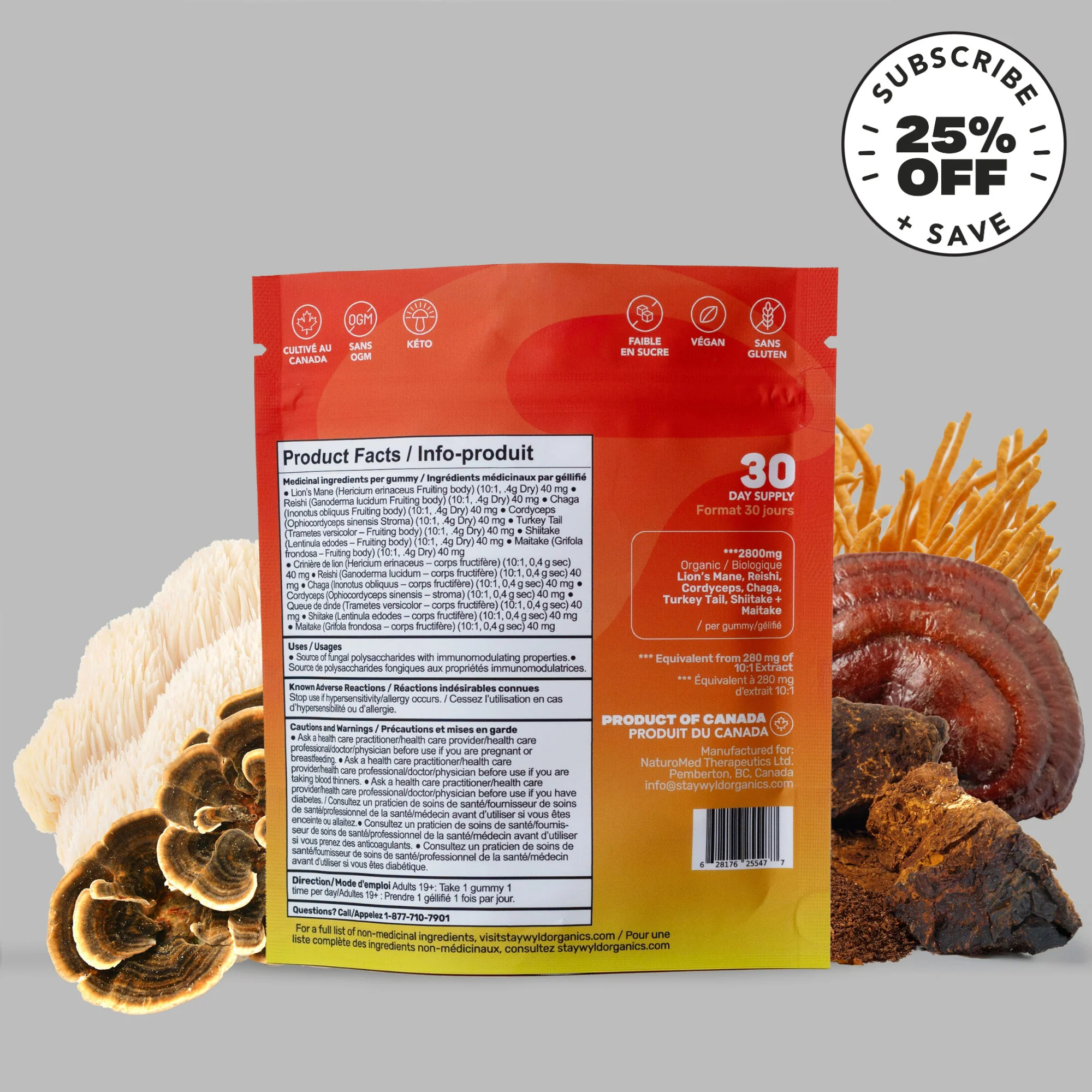 Non-Medicinal Ingredients: Organic Tapioca Syrup, Sorbitol, Organic Cane Sugar, Pectin, Citric Acid, Natural Flavor, Natural Color, Black Carrot Powder (for color), Carnauba Wax