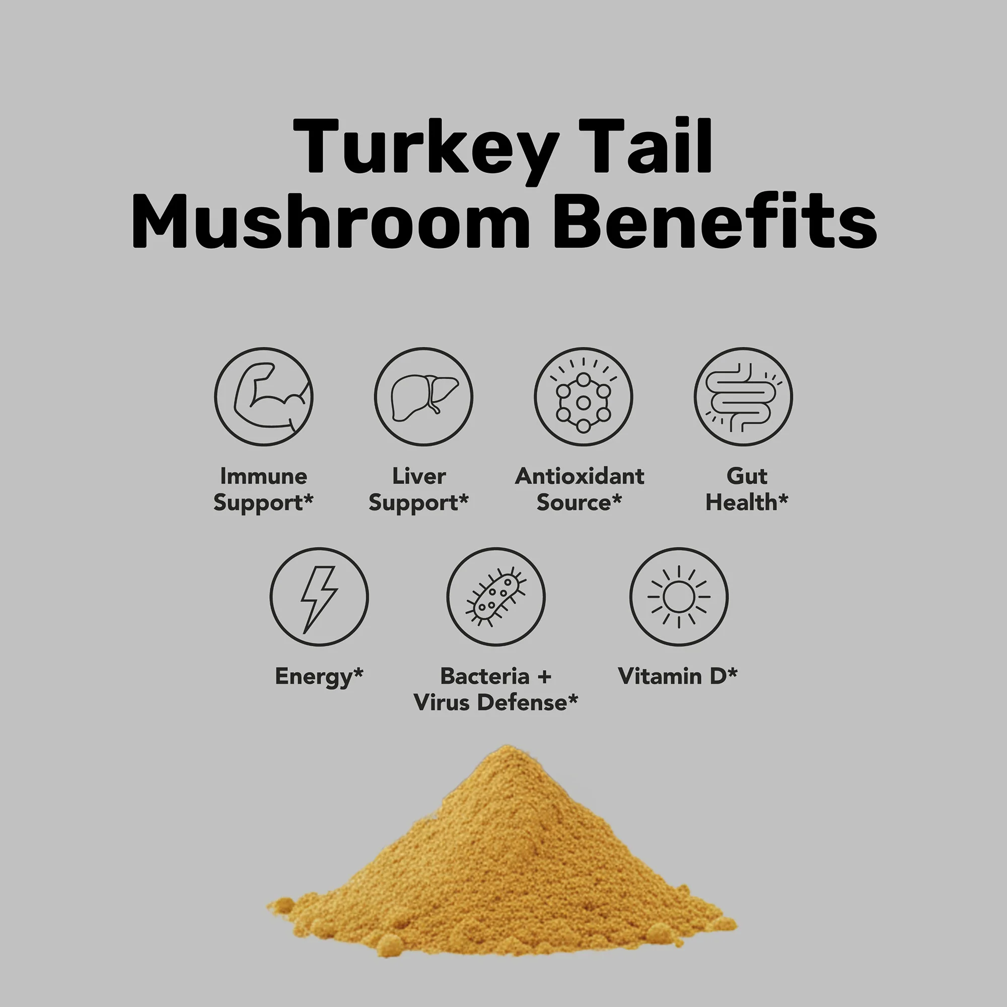 Stay strong with our Turkey Tail Mushroom Powder, made from 100% organic Trametes versicolor fruiting body and mycelium. Gluten-free, vegan, and non-GMO, this bulk powder is packed with immune-supporting compounds to help keep your body resilient every day.